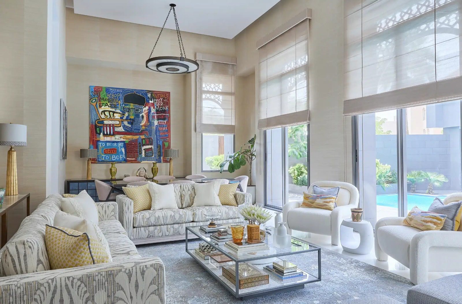 Modern villa lounge area with stylish seating in Nad Al Sheba Dubai